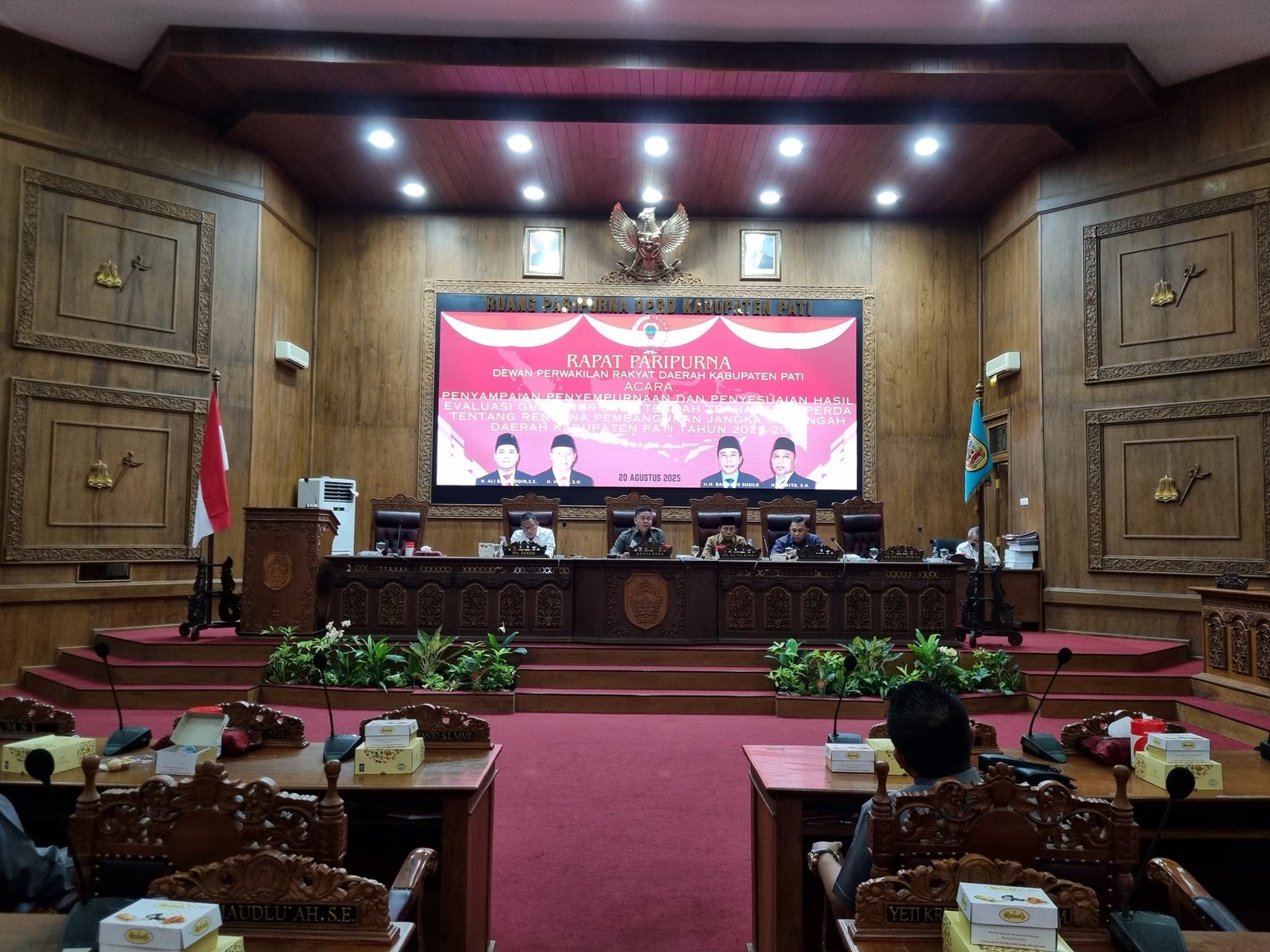 PATI, suarakabar.co.id – Dewan Perwakilan Rakyat Daerah (DPRD) Kabupaten Pati menggelar Rapat Paripurna dengan agenda penyampaian penyempurnaan dan penyesuaian hasil evaluasi Gubernur Jawa Tengah terkait Rancangan Peraturan Daerah (Raperda) tentang Rencana Pembangunan Jangka Menengah Daerah (RPJMD) Kabupaten Pati tahun 2025-2029.