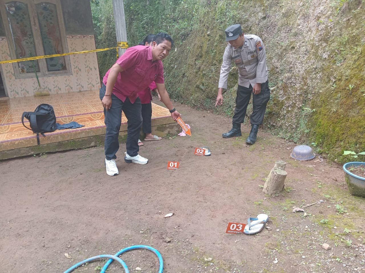 Aris kemudian memeriksa tas hitam yang dibawa pria tersebut. Di dalamnya ditemukan sejumlah perkakas yang diketahui merupakan milik Sukartik. Saat kejadian, pemilik rumah sedang berada di luar untuk menjenguk orang sakit sehingga tidak mengetahui rumahnya dimasuki orang asing.