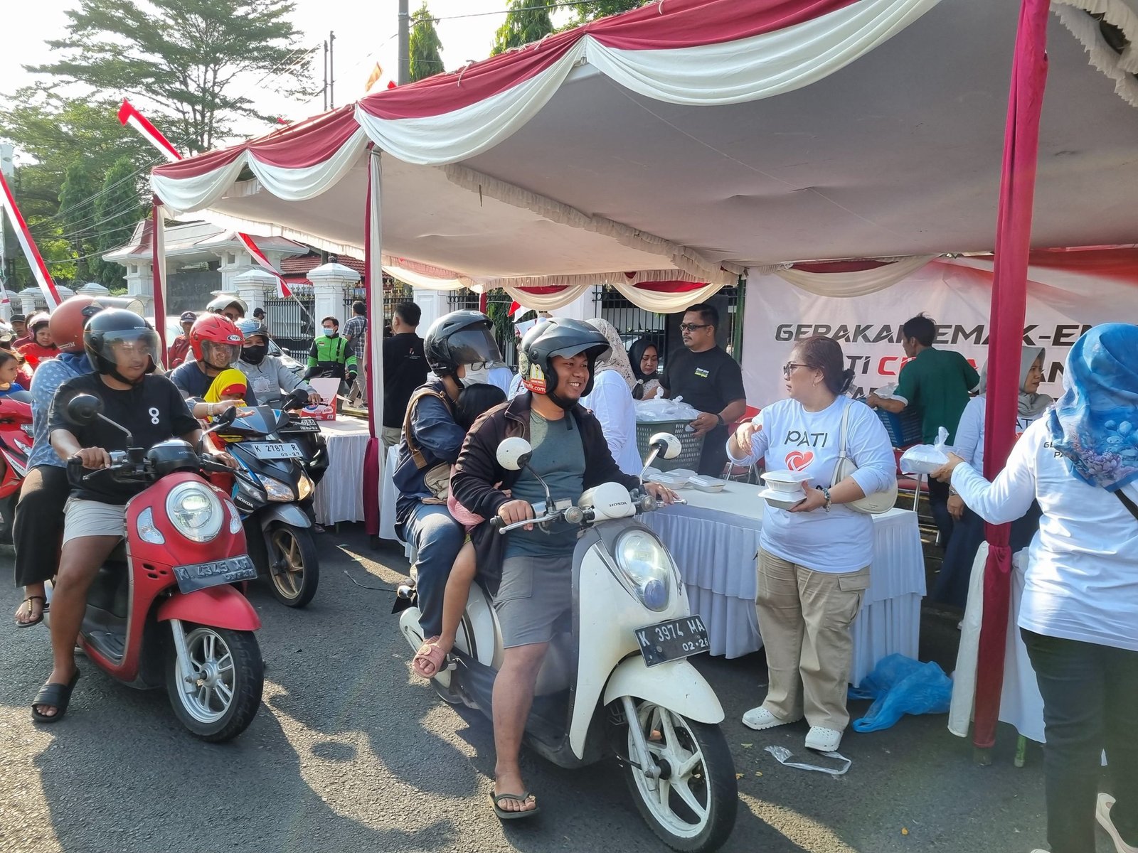 Aksi ini digelar dalam dua sesi, yakni pagi pukul 09.00 WIB dan sore pukul 15.30 WIB. Total sebanyak 1.500 nasi kotak dibagikan secara gratis oleh para emak-emak yang datang dari berbagai wilayah di Kabupaten Pati.