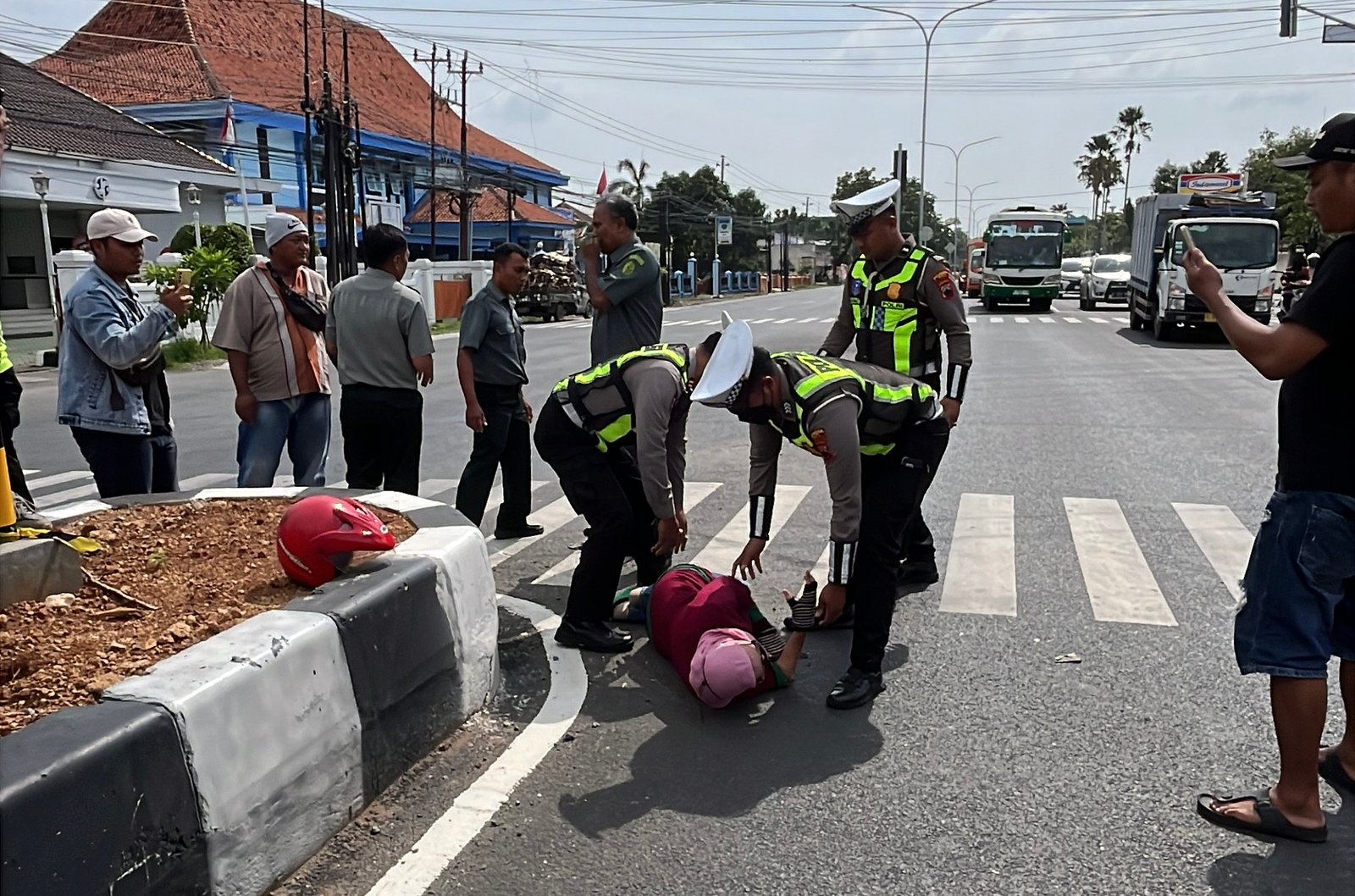 Pengendara Motor Luka Ringan Usai Tersenggol Bus Kejari Pati